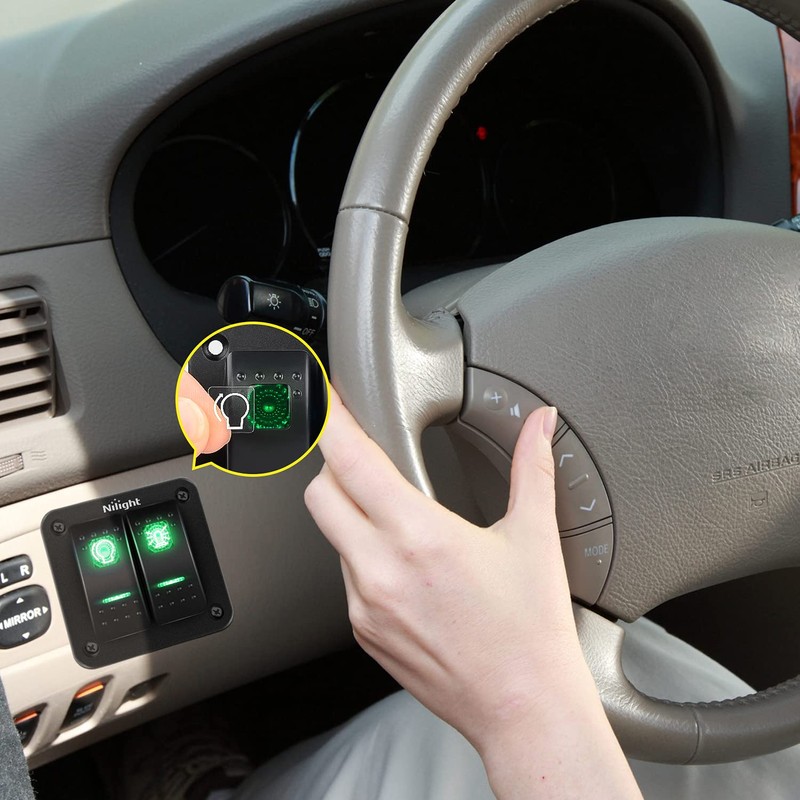Nilight 2 gang switch panels can be used to control Underglow lights, whip lights, rock lights, LED light bars, LED work lights, rear lights, fog lamps, driving lights, headlights, taillights, off-road lights, auxiliary lights, boat lights, etc.