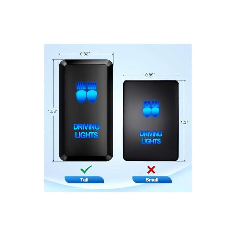 - Compatibility: Surface size 1.54" x 0.83", compatible with Toyota FJ Cruiser 2007-2015; Toyota Fortuner 2005-2014; Toyota Hilux 2005-2014; Toyota Tacoma 2005-2011; Toyota Tacoma 2012-2015 (Left Side only); Toyota Highlander 2001-2007; Toyota Tundra 2005-2006 (Center Console if equipped); Toyota 4Runner 2003-2009; Toyota Prado 120 Series 2003-2009; Toyota Land Cruiser 100 Series 1998-2007; Toyota Land Cruiser 75, 76, 78 & 79 series. Please measure your present switches and compare the sizes