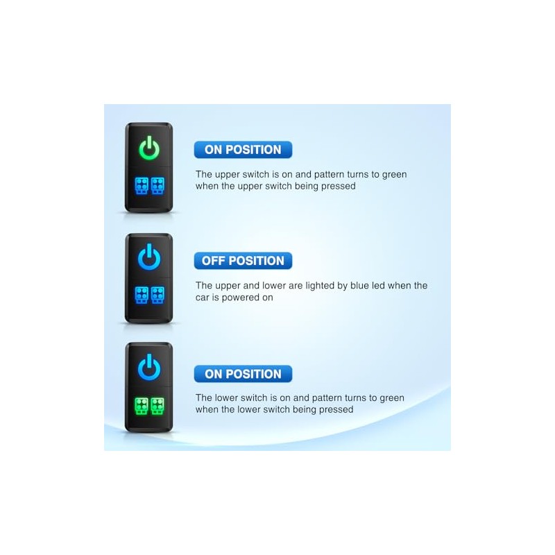 • Dual Push Button Switch: Dual on/off button 2-in-1 design, suitable for power & LED work lights at the same time.The ON-OFF rocker switch with SPST design (single pole single Throw) is manufactured to fit in the OEM switch blank for your cars. It come with a small pigtail that plugs into the back of the switch for better installation