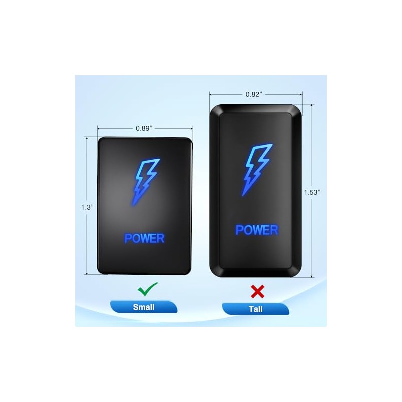 - Compatibility: Surface size 1.28" x 0.87", compatible with Toyota Sequoia 2008-ON, Highlander 2008-ON, Tacoma 2012-ON (Center only), Tundra 2008-ON, 4Runner 2010-ON, RAV4 2008-2012, Yaris 2008. Please measure your present switches and compare the sizes.