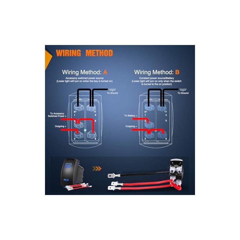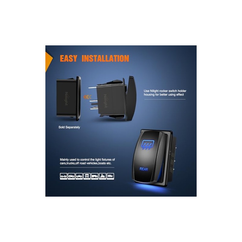 • Wide Application: Standard 5 Pin switch, rated at 20amp/12VDC and 10amp/24VDC, available for upgrading most wiring harness to control Rear Lights, Rock Lights, Led Light Bar, Led Work Lights, Fog Lamps, Headlights, Taillights and Auxiliary Lamps, etc