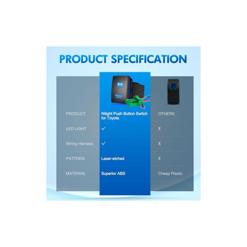 Nilight Nilight Reverse Lights Push Button Switch 12V ON Off Switches with Connector Wire Kit 1.28" x 0.87" Replacement for Toyota Sequoia Highlander Tacoma Tundra 4Runner RAVR Yaris