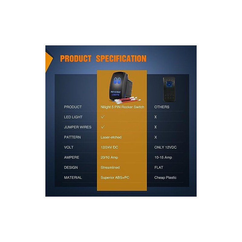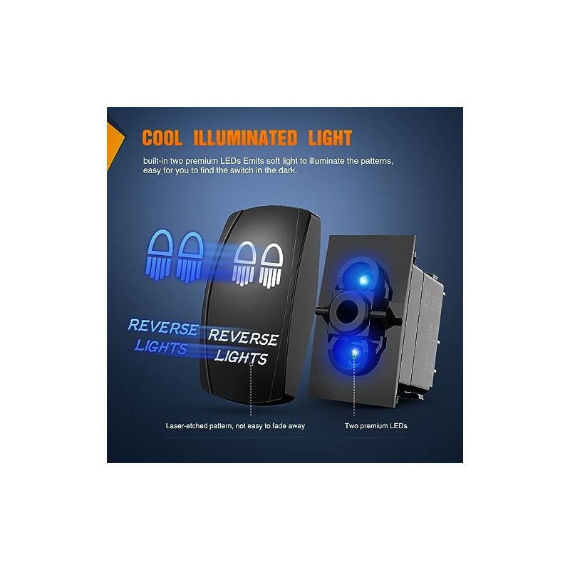 Nilight Nilight Reverse Lights Rocker Switches Led Light Bar Switch 5 Pin Laser On Off SPST switches 20A/12V 10A/24V Blue with Jumper Wires Set for Cars Trucks Boats ATVs UTVs RVs
