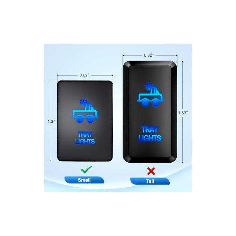 - Compatibility: Surface size 1.28" x 0.87", compatible with Toyota Sequoia 2008-ON, Highlander 2008-ON, Tacoma 2012-ON (Center only), Tundra 2008-ON, 4Runner 2010-ON, RAV4 2008-2012, Yaris 2008. Please measure your present switches and compare the sizes