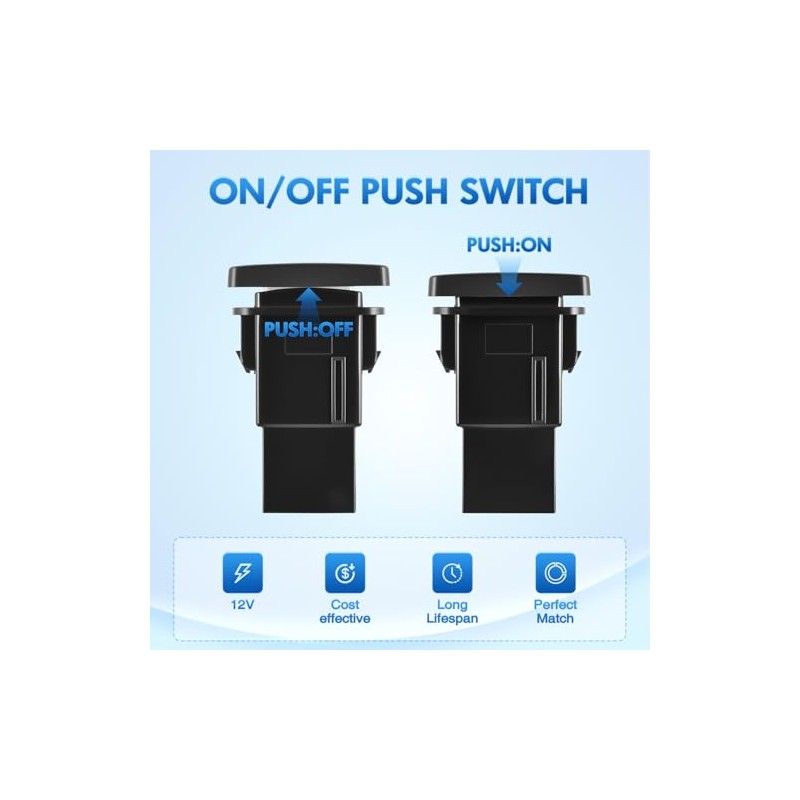 - Push Button Switch: The ON-OFF rocker switch with SPST design (single pole single Throw) is manufactured to fit in the OEM switch blank for your cars. It come with a small pigtail that plugs into the back of the switch for better installation