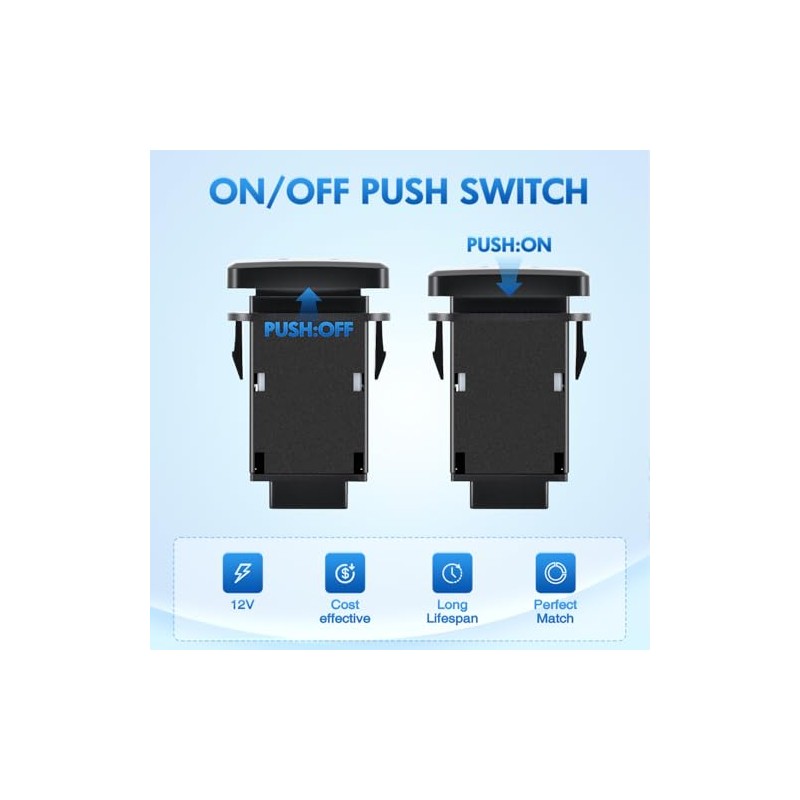 - Push Button Switch: The ON-OFF rocker switch with SPST design (single pole single Throw) is manufactured to fit in the OEM switch blank for your cars. It come with a small pigtail that plugs into the back of the switch for better installation