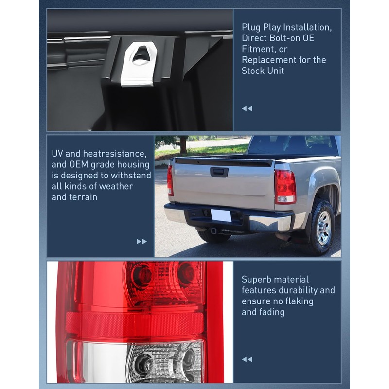 - DOT Compliance and safe Driving: To ensure driving safety for you and the oncoming driving circumstance, our 2007-2013 GMC Sierra 1500 2500HD 3500HD taillights are DOT & SAE compliant. Taillight will upgrade your lighting, making your vehicle easier to see for other drivers and passengers.