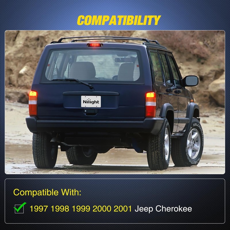 Nilight Third Brake Light Tail High Mount 3rd Stop Lights Smoked Lens Compatible with Jeep Cherokee 1997 1998 1999 2000 2001 SUV Accessories Rear Cab Lamp