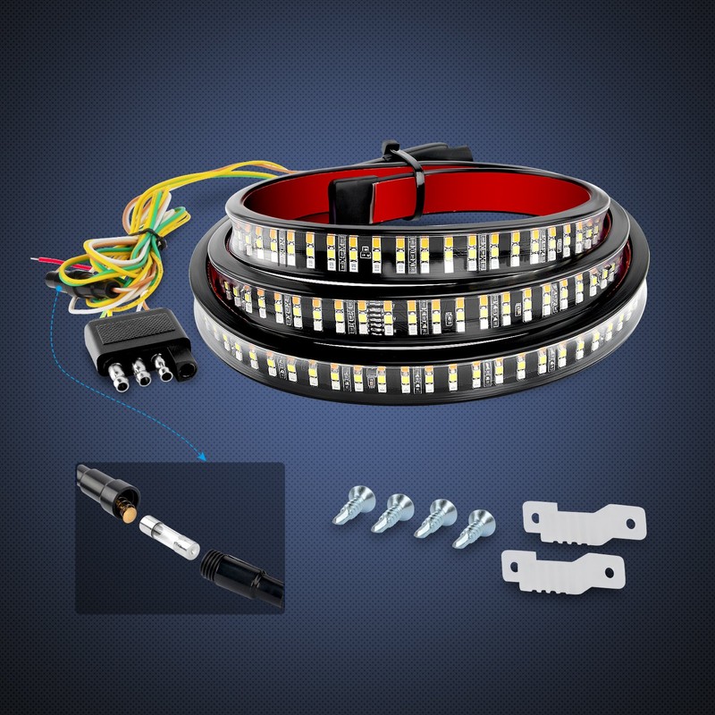 - Easy Installation: Just peel and stick, standard 4-pin flat connector plug and play. Tailgate light bar comes with tough-as-nails adhesive enhancer that can increases hold strength over 5X, no worries of falling off.
