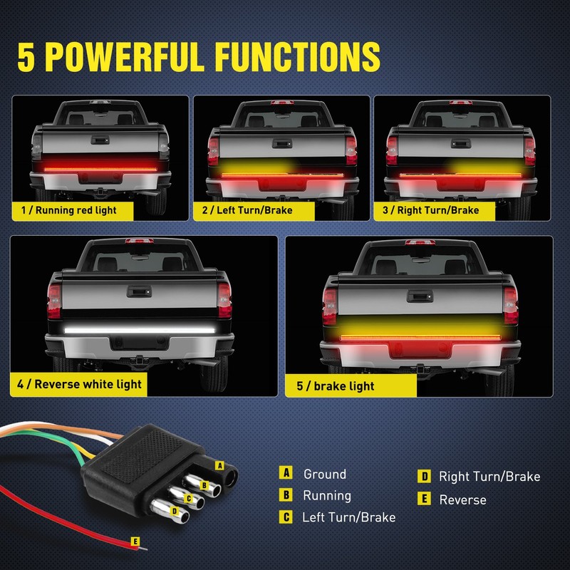 - Easy Installation: Just peel and stick, standard 4-pin flat connector plug and play. Tailgate light bar comes with tough-as-nails adhesive enhancer that can increases hold strength over 5X, no worries of falling off.