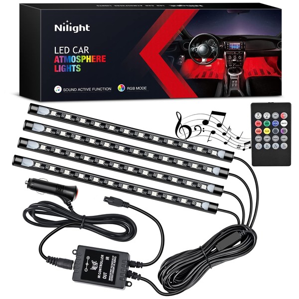 Nilight - TR-06 4PCS 48 LED Interior Lights DC 12V Multicolor Music Car Strip Light Under Dash Lighting Kit with Sound Active Function and Wireless Remote Control, 2 Years Warranty