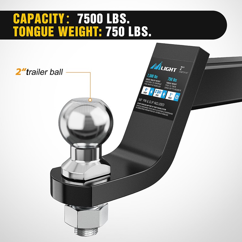 - Heavy Duty Trailer Hitch - Offers a gross trailer weight capacity of up to 7,500 lbs and 750 pounds tongue weight, Perfect for towing trailer, campers, hauling motorcycles and ATVs with 2-inch standard hitch receiver