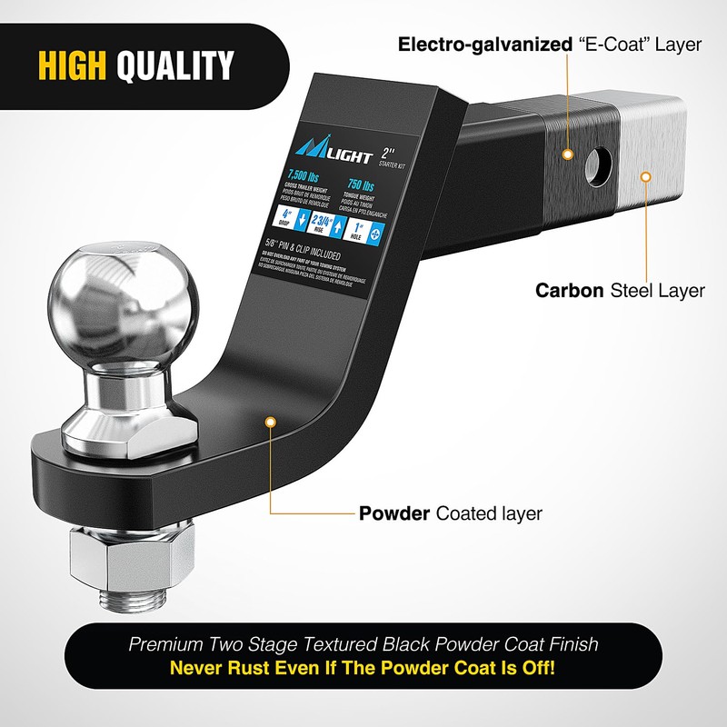 - Heavy Duty Trailer Hitch - Offers a gross trailer weight capacity of up to 7,500 lbs and 750 pounds tongue weight, Perfect for towing trailer, campers, hauling motorcycles and ATVs with 2-inch standard hitch receiver