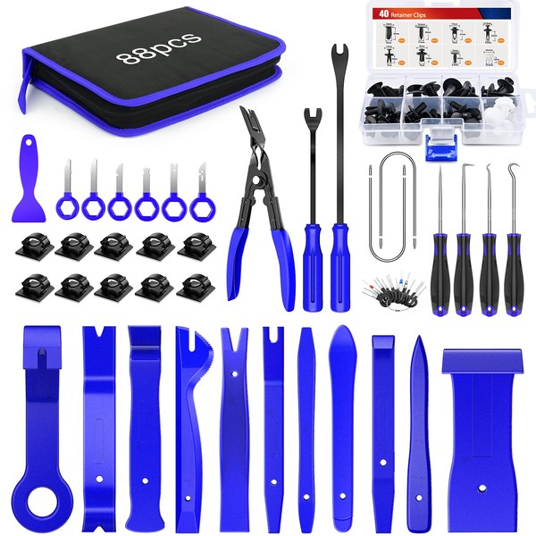 - Package Include:Including 40Pcs of 8 sizes retainer clips, 48Pcs car trim tools with a portable bag