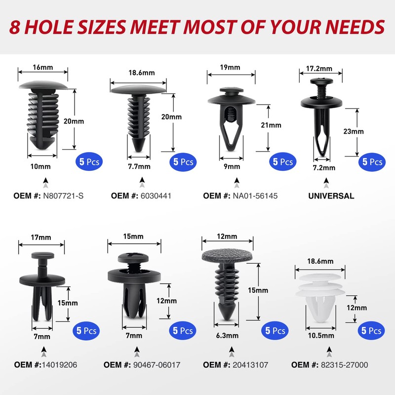 - Popular Retainer Clips & Tools : Provided with this great assortment of retainer clips and 6 kinds of accessories, meet most of your needs and will be a good helper for you