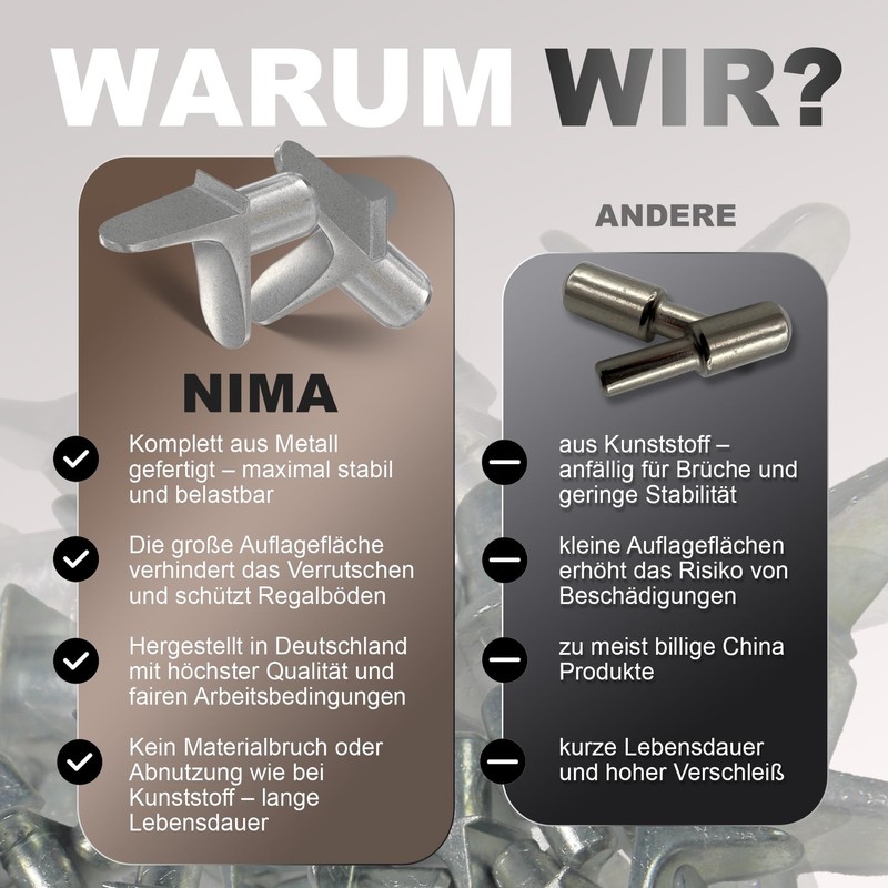 NIMA PARTS Bodentr?ger mit Auflage ?5 mm - 20 Stck - Made in Germany - rostfreie Regalbodentr?ger - Fachbodentr?ger - Regalbodenhalter mit Auflage - Regalstifte verzinkt