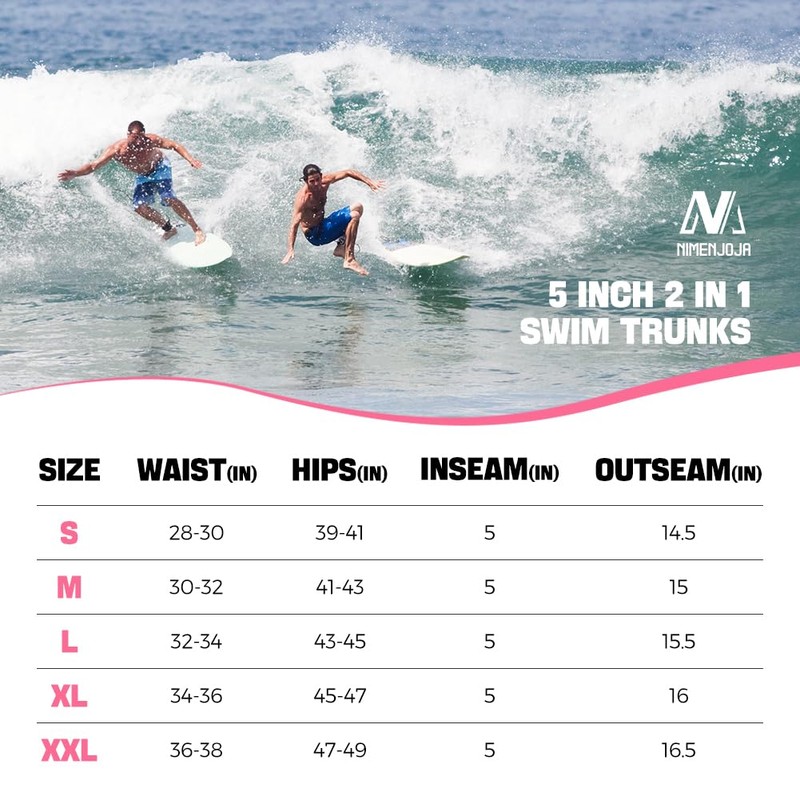 NIMENJOJA Mens 5" Swim Trunks with Compression Liner Quick Dry Stretch Board Shorts Zipper Pockets Beach Shorts