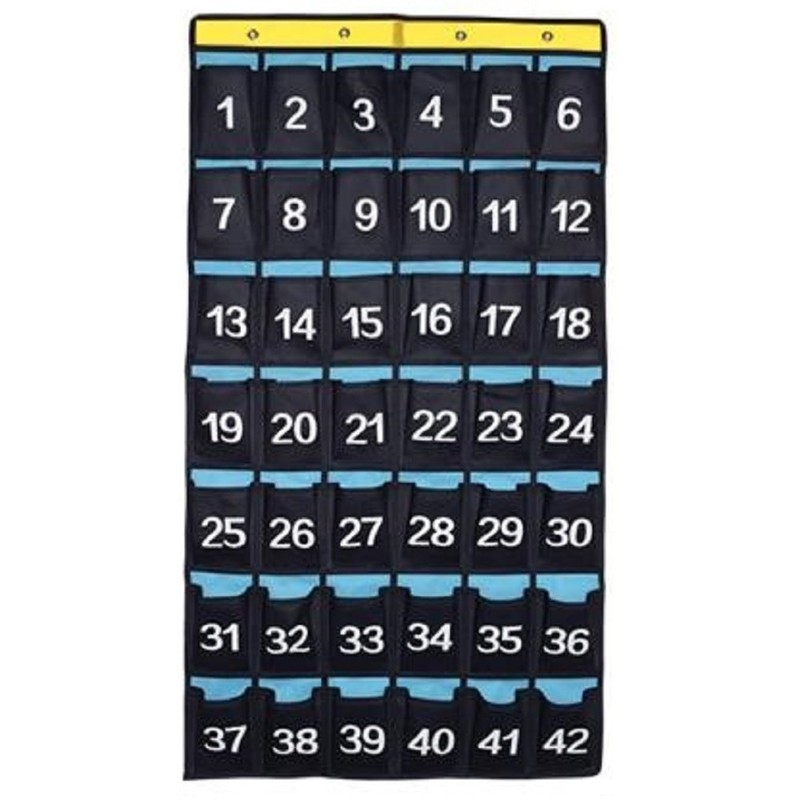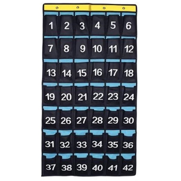 NIMES Numbered Organizer Classroom Pocket Chart for Cell Phones Calculators Holders Blue (42 Pockets)