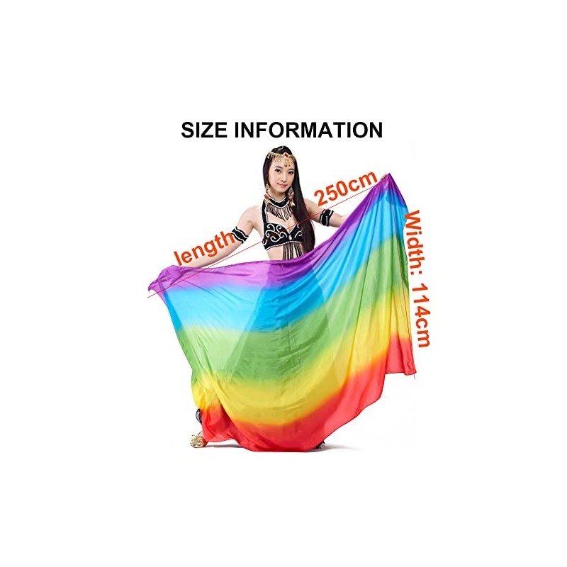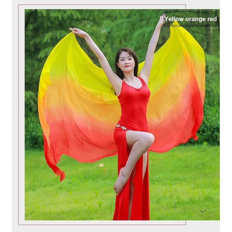 Nimiman Women 100% Real Silk Belly Dance Veils Dancing Hand Scarves Gradual Color Adult Size (Red Orange Yellow)