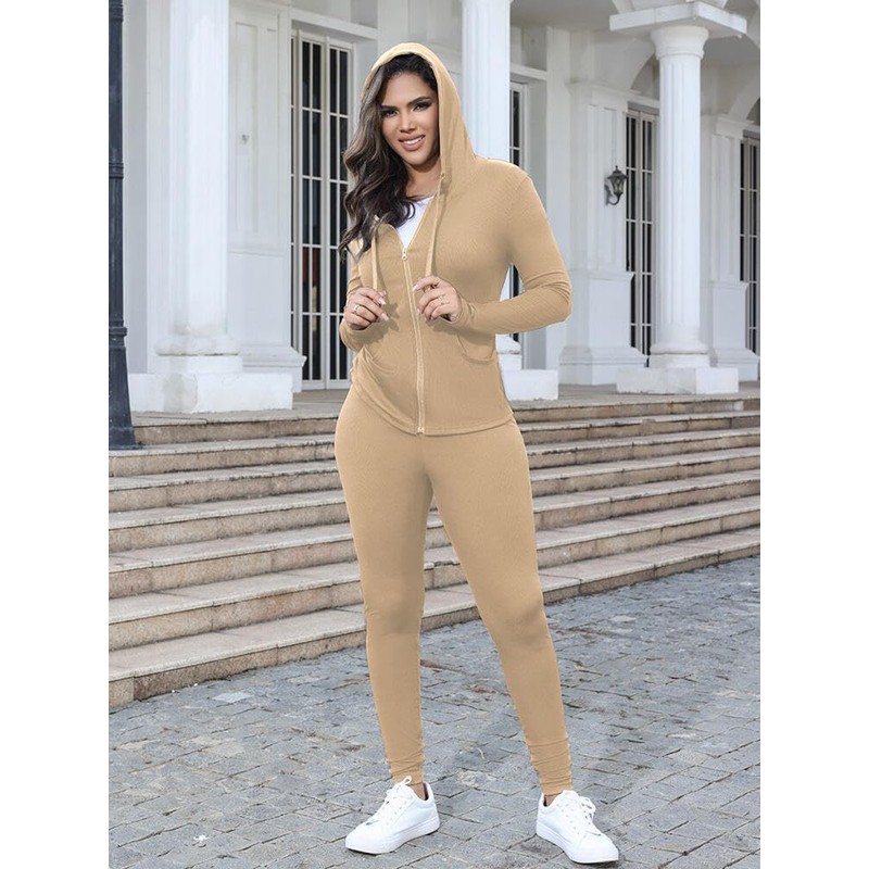 - Features: This workout sets for women includes a long sleeve, full zip-up hoodie with two slant pockets, an elastic high waist, and bodycon sweatpants. Enhance your fashion taste and wearing experience with these versatile suits, suitable for various body types.