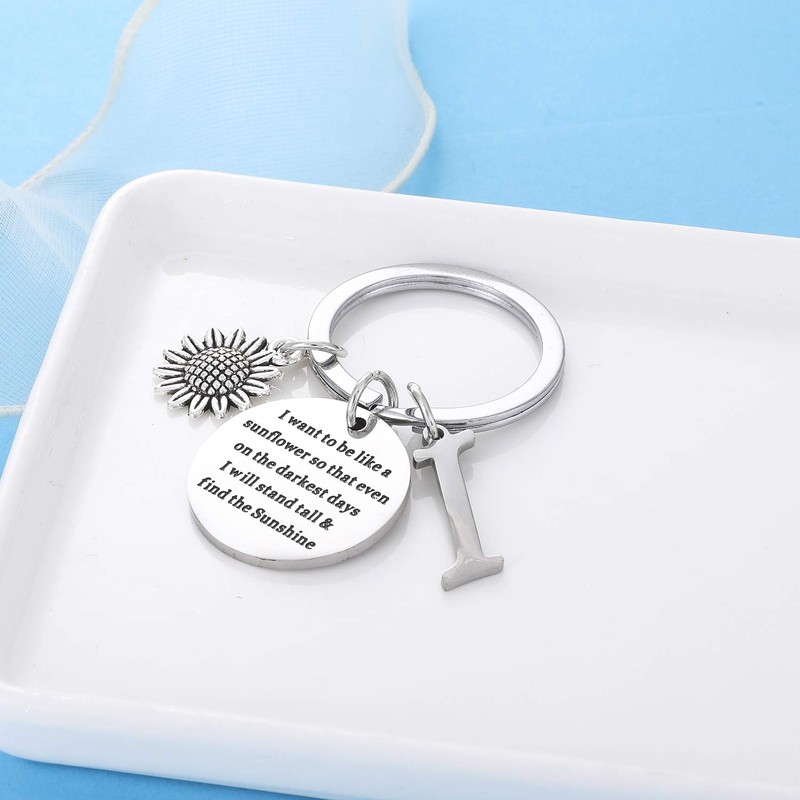 - Sunflower gifts charm keychain with initials, premium stainless steel, high polished keychains never get tarnished. No irritation for sensitive skin.