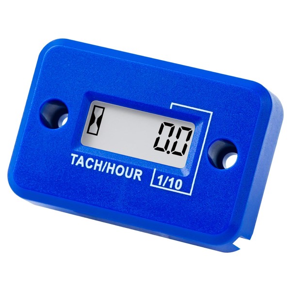NInE-ROnG Tach Operating Hour Counter Digital LCD Inductive Tachometer RPM Measurement Waterproof Design for Gas Engine Lawn Mower Motorcycle Snowmobile Generator (2 Stroke) (Blue)