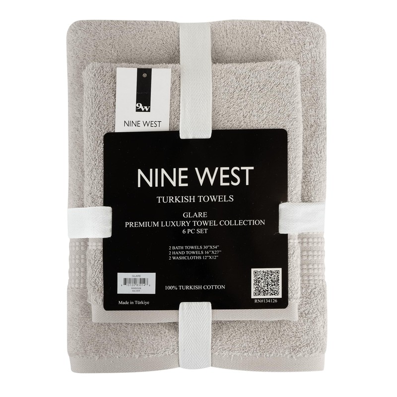 Nine West - Luxury 6 Piece Towel Set, 100% Turkish Cotton Terry Cloth, Quick Drying, Highly Absorbent & Comfy, Includes 2 Bath Towels, 2 Hand Towels & 2 Washcloths | (Silver)