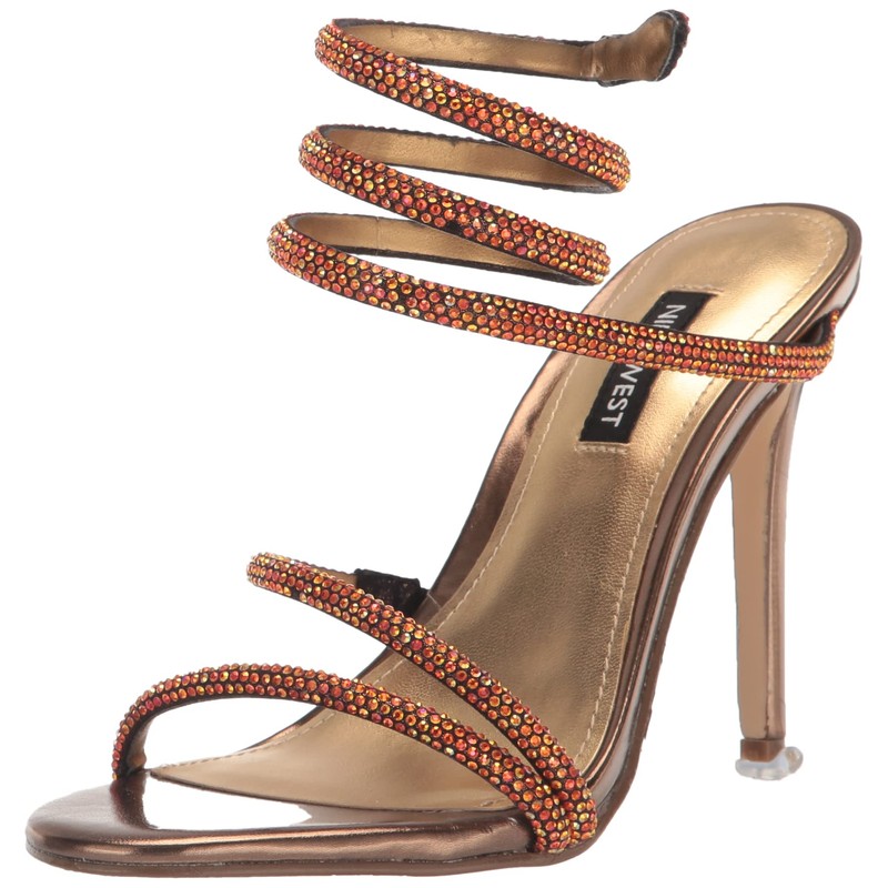 • It's all about glitz and glam with the Maskil Dress sandal. This sandal features embellished barely there straps that adjust around the ankle and a skinny heel. Founded in 1978, Nine West empowers women to take on the world in style, from day to night.