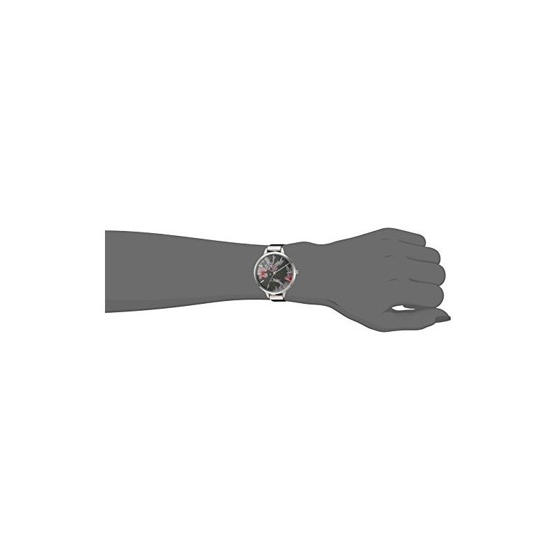 - Nine West women's watch featuring a round silver tone case and 3D floral printed dial.