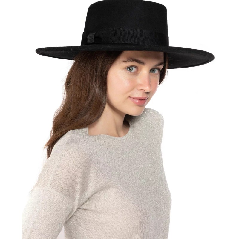 Nine West Wool Felt Telescope Floppy Hat, Black