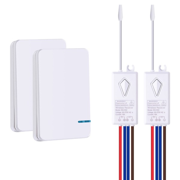 NineLeaf 16A Wireless Switch Kit for LED Lights Lamps with Remote Control Wire Free Receiver No Wiring No Battery Required Easily Installed 2 Pack