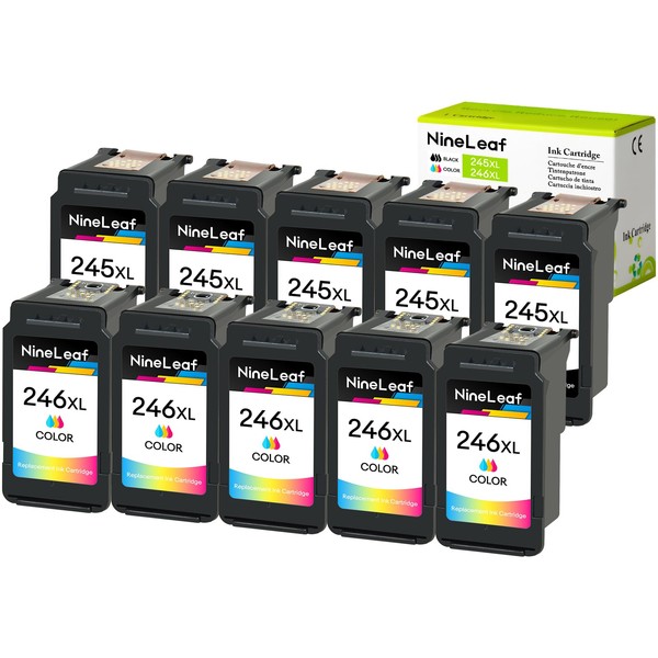NineLeaf Remanufactured 246 246 High Yield Ink Cartridge Compatible for Canon PG 245XL CL 246XL Use in MX490 MG2522 MG2525 MG2922 MG2924 MG3022 TS3120 TS3122 TS202 Printer (5 Black, 5 Tri-Color)