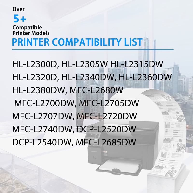 - ✅ Compatible with Brother Printer Models: HL-L2300D, HL-L2305W, HL-L2315DW, HL-L2320D, HL-L2340DW, HL-L2360DW, HL-L2380DW, MFC-L2680W, MFC-L2685DW, MFC-L2700DW, MFC-L2705DW, MFC-L2707DW, MFC-L2720DW, MFC-L2740DW, DCP-L2520DW, DCP-L2540DW Printer