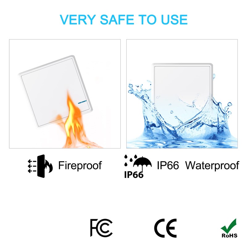- 🏠LONG LIFE GUARANTEE - Made of fireproof PC and Anti-UV material, not easy to age or turn yellow. IP66 waterproof, and thus use safely even in damp places. The wireless light switch for multiple light receivers can be used over 500,000 times; the switch key can be used over 800,000 times. Self-adhesive tape was provided for installation. We offer a whole life year warranty and friendly 24-hour customer service. Any questions, please feel free to contact us.