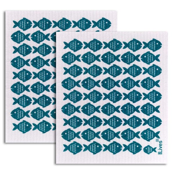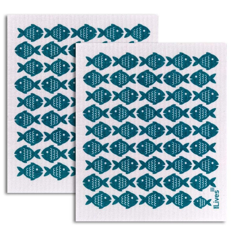 NineLives Dish Cloth Fish Set of 2 | Cloths for Kitchen, Bathroom | Sponge Cloth, Cleaning Cloth
