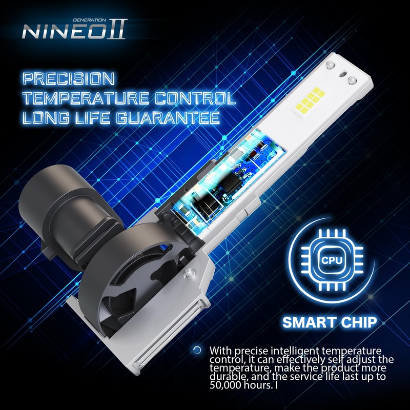 • Longer Lifespan:NINEO h11 bulbs are equipped with a smart temperature control system that eliminates the need to burn down due to overheating and has a service life of more than 50,000 hours