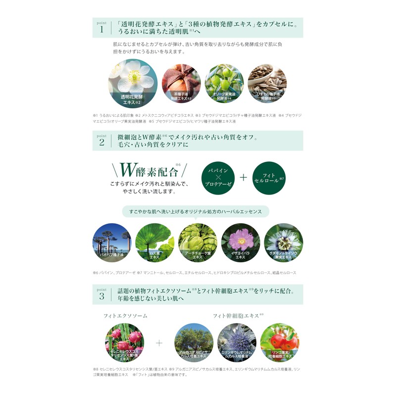 - For beautiful skin that won't feel aged: In addition to the phytoexome, it is a rich blend of Phytoexome, which is suitable for aging skin. After cleansing, it will lead to a firm skin like after applying the serum 1. Due to dirt and old exfoliation. *2 pores are invisible. *3. The impression of the skin due to moisturizing. *4 "Phito" means from plants