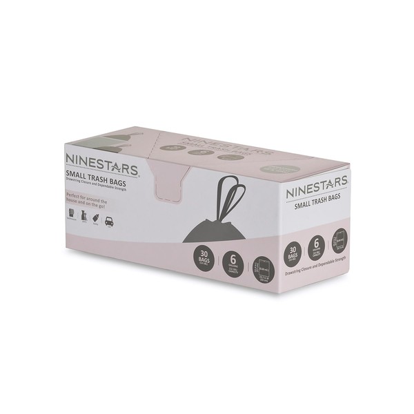 NINESTARS NSTB-6-30 Extra Strong White Trash Bag w/Drawstring Closure, 6 Gal. / 20 L., 30 count