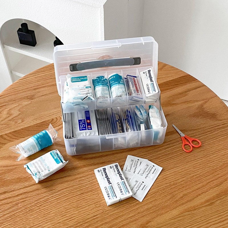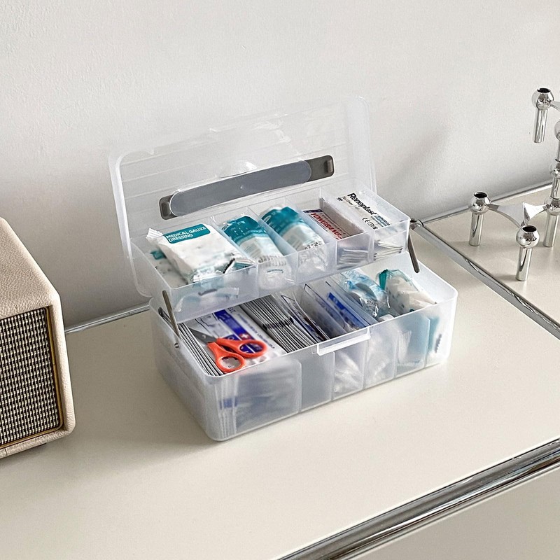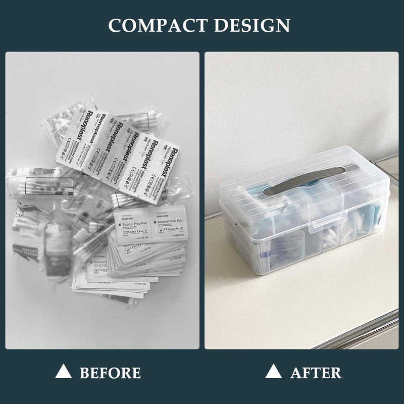 Simple and practical storage box, perfect for bandages and tapes, home office supplies, art and crafts supplies, beads, laundry room accessories, bathroom accessories, hair accessories and first-aid supplies.