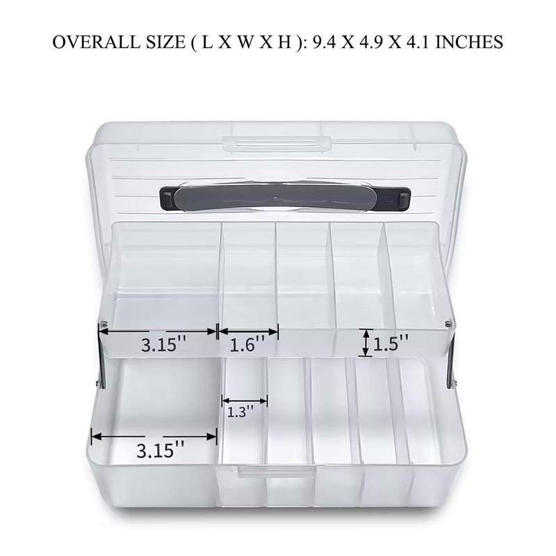 • Compact Design: the overall size ( L x W x H ): 9.4 x 4.9 x 4.1 inches. Plastic bandage supply organizer and storage is compact design with 11 small compartments with different sizes