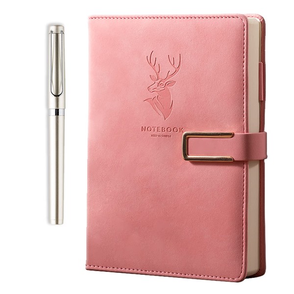 NINEWORD Super Thick Business Notebook A5 Buckle Sheepskin Notepad(Deer Head Design) PU Leather Hardcover Notepad,Journal,Diary Gift(Pink)