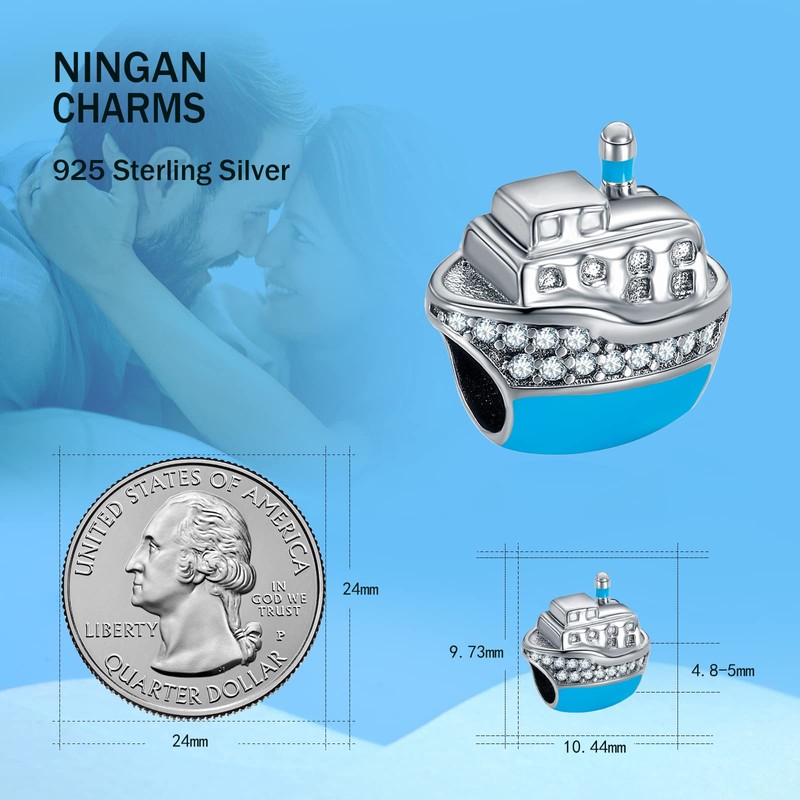 NINGAN 925 Sterling Silver Blue Cruise Ship Beaded Charms 5A Zircon Besds Travel Collection Women Bracelet Charm