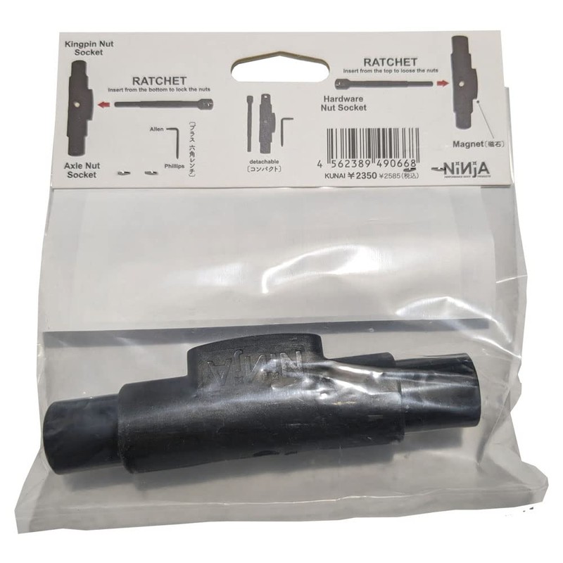 NINJA skateboard skate tool. With this one, you can assemble it, disassemble and adjust it. NEW TOOL KUNAI Naoshi Kikawada PRO Naming & Produce. Compact ratchet Detachable and easy to store all parts in one Color: Matte Black.