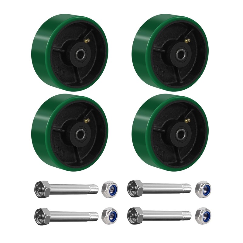NINOSO 5" x 2" Heavy Duty Caster Wheels, Polyurethane on Cast Iron Wheel, Set of 4 Replacement Industrial Wheels for Cart Toolbox (4 Wheel, Green)