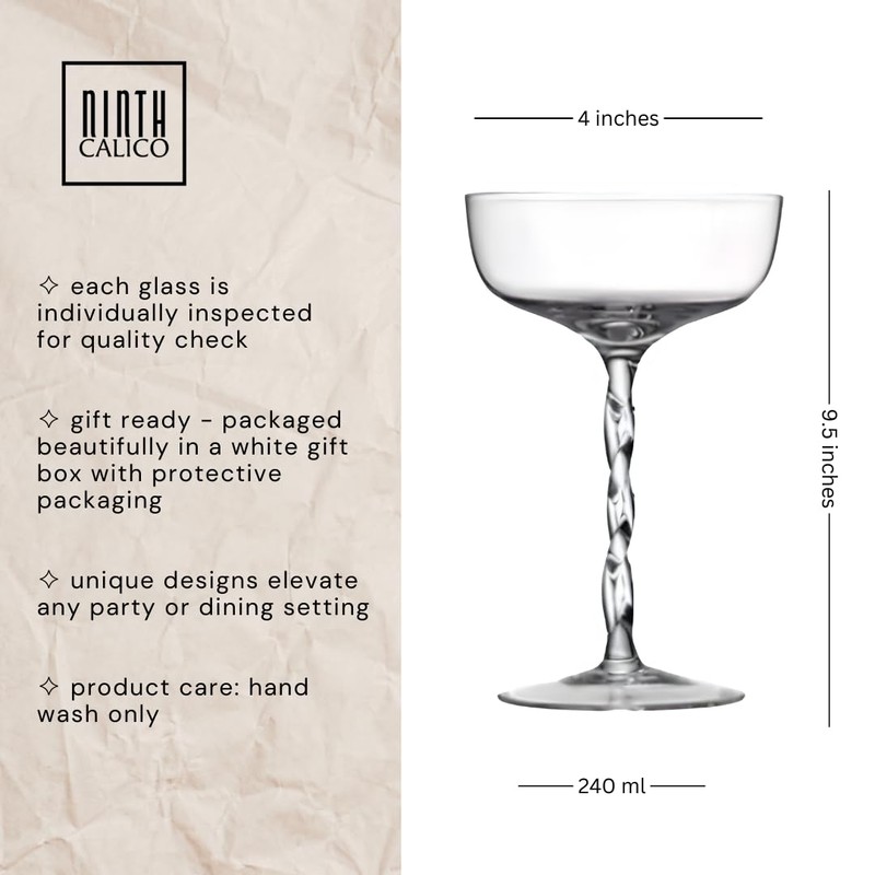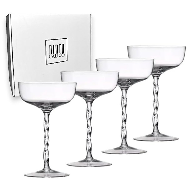 Ninth Calico Crystal Cocktail Coupe Glasses, Set of 4, Elegant Stemware for Parties and Special Occasions