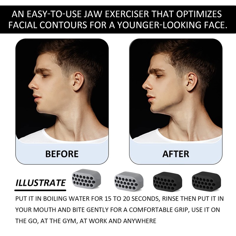 - ✅ 【Easy to Use】 This jaw trainer is very easy to clean, put it in boiling water for 15-20 seconds before use, rinse then put in your mouth and bite gently for a comfortable grip. Rinse with water after use and dry for the next use.