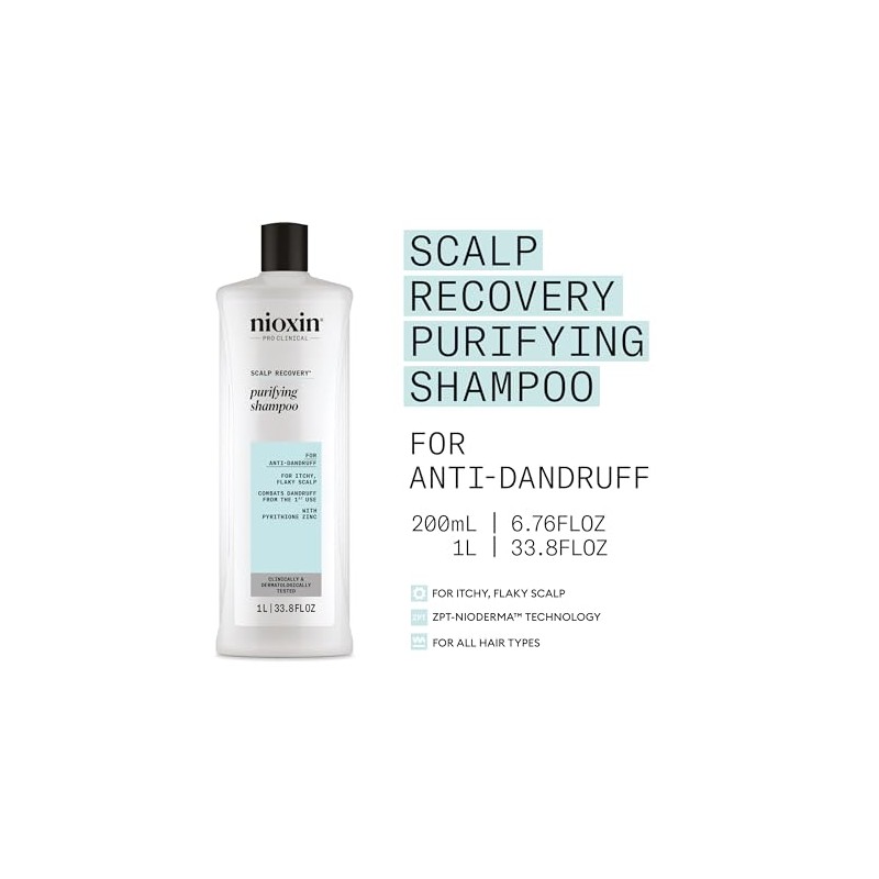 - Targeted Scalp Relief: Experience targeted relief from dryness, itchiness, redness, and flakiness. The Nioxin Scalp Recovery Purifying Shampoo provides soothing relief, helping you bid farewell to discomfort.