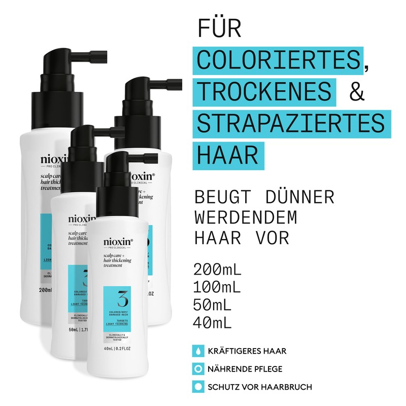 Nioxin Scalp + Hair System 3 Hair Thickening Treatment - Niacinamide Serum for Coloured, Dry & Damaged Hair Prevents Thinning Hair - with Biotin & Caffeine (100 ml)