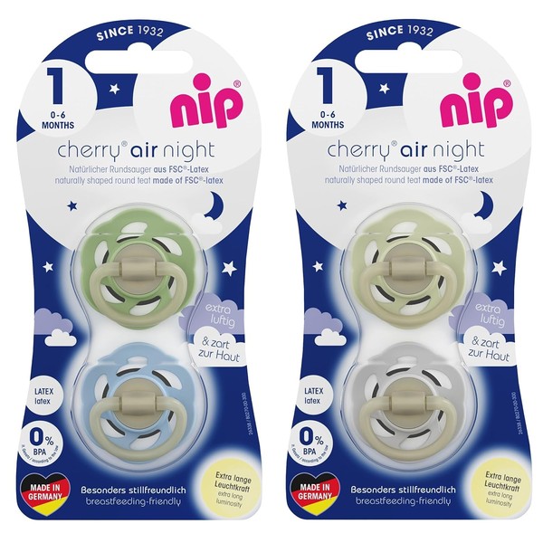 NIP Cherry Round Dummy Night 0-6 Months, Luminous Dummy, from Birth 0+ Months, Glows in the Dark
