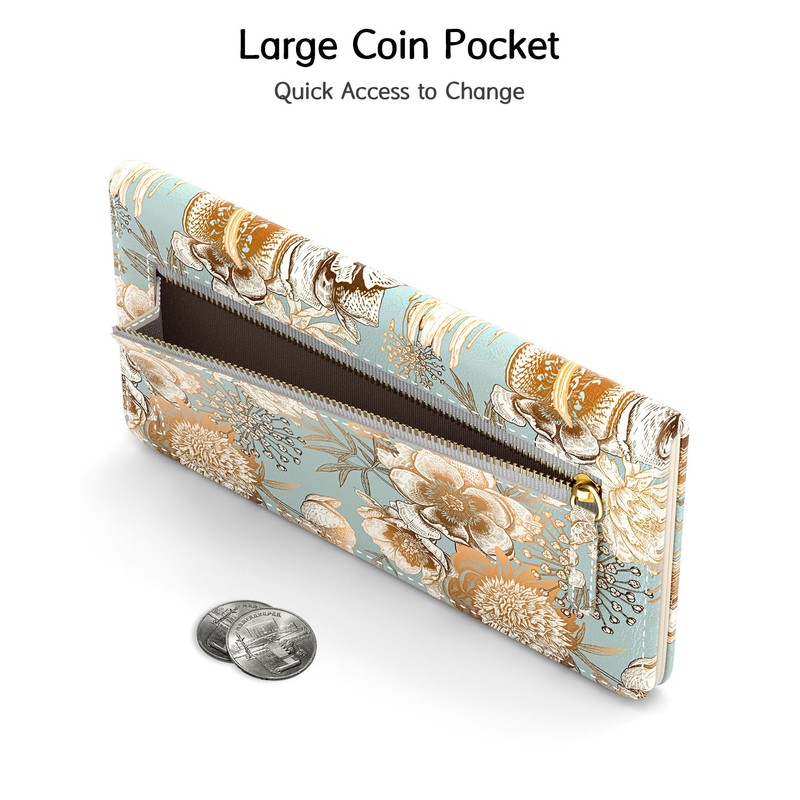 - Large Capacity: Ladies wallet designed with 11 card slots, 1 visual ID window, 1 zipper coin pocket, 3 long cash & receipts compartment, you can put 1 - 2 cards into each card slot. Plenty of room, enough to satisfy all your needs for an everyday wallet